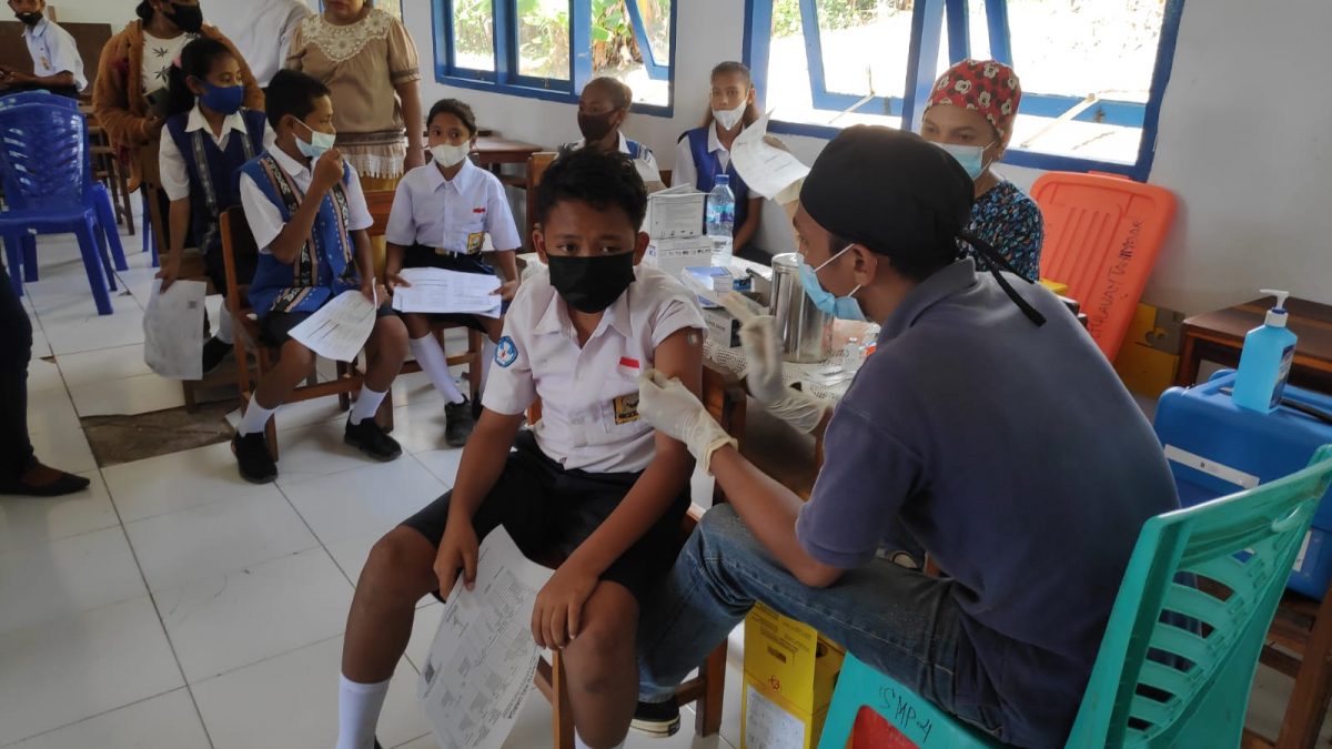 Kegiatan dilakukan di sekolah SMP N. 4. desa Wowonda, Kecamatan Tanimbar Selatan, Kabupaten Kepulauan Tanimbar dengan melibatkan Tim Vaksinator Polres Tanimbar yang berjumlah 11 orang terdiri dari, 2 dokter, 3 perawat dibantu admin 6 orang.