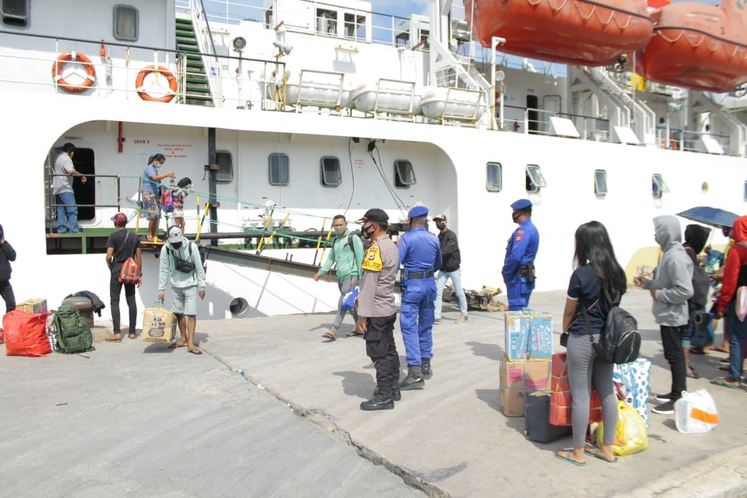 Tribratanews.polrestanimbar.com – Polda Maluku, Polres Maluku Tenggara Barat, Kamis 05 November 2020, pukul 09.30 wit, bertempat di Pelabuhan Yos Sudarso Saumlaki Kecamatan Tanimbar Selatan, Kabupaten Kepulauan Tanimbar dilaksanakan Pengamanan Kedatangan Para Pelaku Perjalanan dari Wilayah Kota Ambon Provinsi Maluku berjumlah 137 orang dengan menggunakan KM. Sabuk Nusantara 72 oleh personil Operasi Aman Nusa Polres Kepulauan Tanimbar.