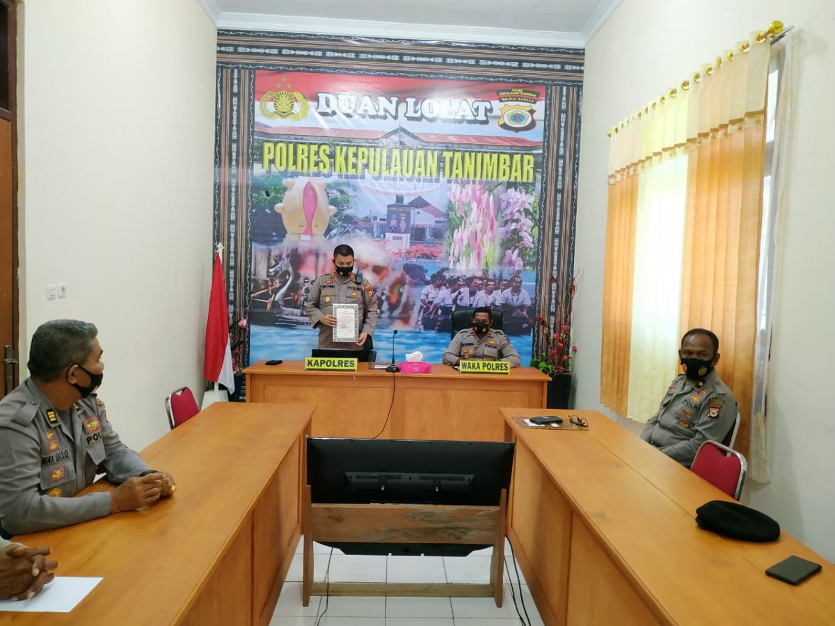 Tribratanews.polrestanimbar.com – Polda Maluku, Polres Kepulauan Tanimbar, Selasa 27 April 2021, pukul 10.00 wit bertempat di ruangan Vicon Polres Kepulauan Tanimbar, dilaksanakan kegiatan Pencanangan Zona Integritas (ZI) menuju Wilayah Bebas Korupsi (WBK) di lingkungan Kepolisian Daerah Maluku secara Virtual dengan dihadiri oleh Kapolres Kepulauan Tanimbar AKBP Romi Agusriansyah, S.I.K., didampingi Waka Polres Kompol Hendra Y. P. Haurissa, S.H., beserta PJU Polres Kepulauan Tanimbar.