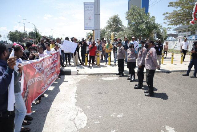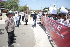 Tribratanews.polrestanimbar.com – Polda Maluku, Polres Kepulauan Tanimbar, sebanyak 31 personel Polri sesuai surat perintah Kapolres Tanimbar dengan nomor Sprin : 1058/VIII/PAM.3./2022, dipimpin Perwira Pengendali (Padal) Kasat Polairud Polres Tanimbar Iptu Petrus Metanila lakukan Pengamanan terhadap aksi unjuk rasa Lucky Centre Foundation (LCF) bersama masyakat desa Lermatang di depan kantor Bupati kepulauan Tanimbar. Jumat (26/08).