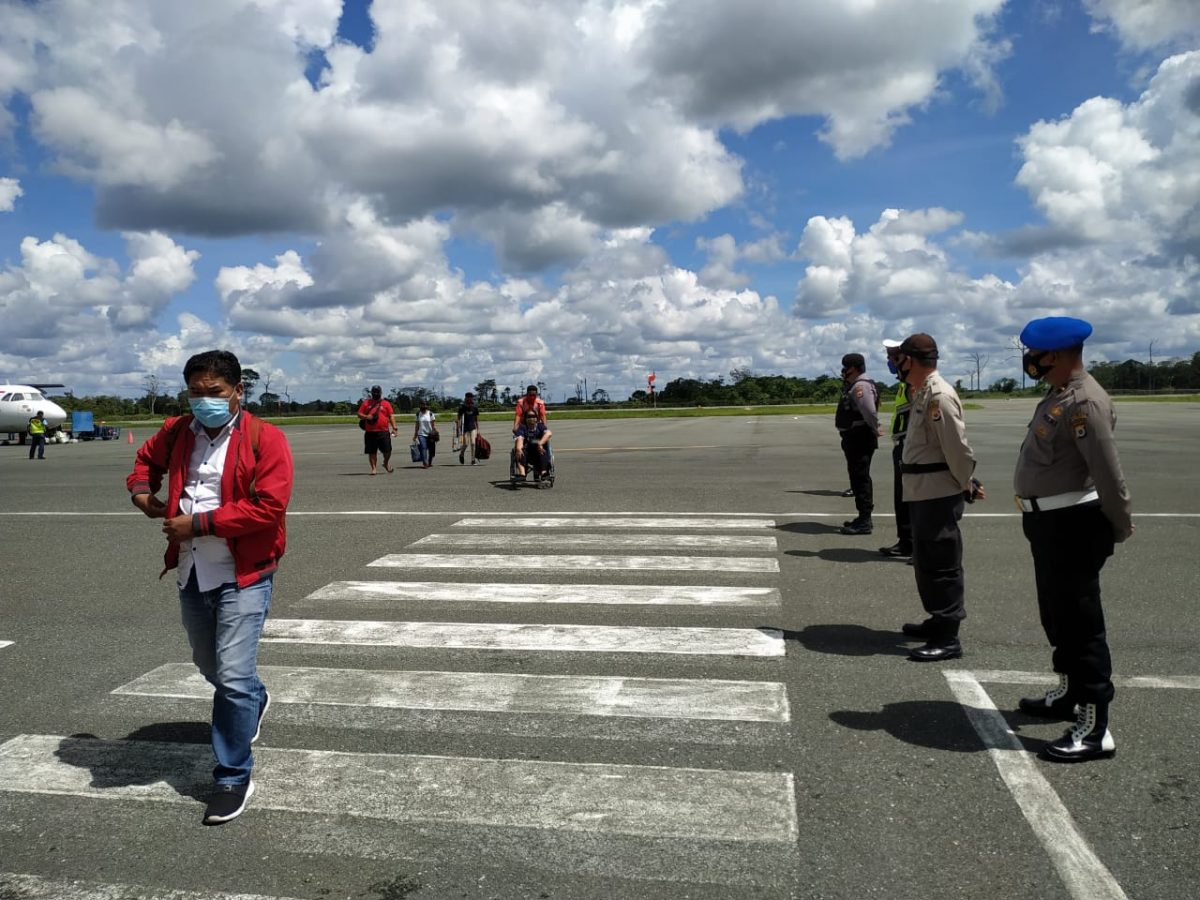 Tribratanews.polrestanimbar.com – Polda Maluku, Polres Maluku Tenggara Barat, Jumat 11 Desember 2020, pukul 10.30 wit, bertempat di Bandara Udara Mathilda Batlayeri Saumlaki dilaksanakan Kegiatan Pengamanan sekaligus Penjemputan Pelaku Perjalanan dari Wilayah Kota Ambon Provinsi Maluku dengan menggunakan Pesawat Wings Air Jenis ATR/72-600 dengan nomor Penerbangan/Flight Number LW 1516/11DES AMQ – SXK.