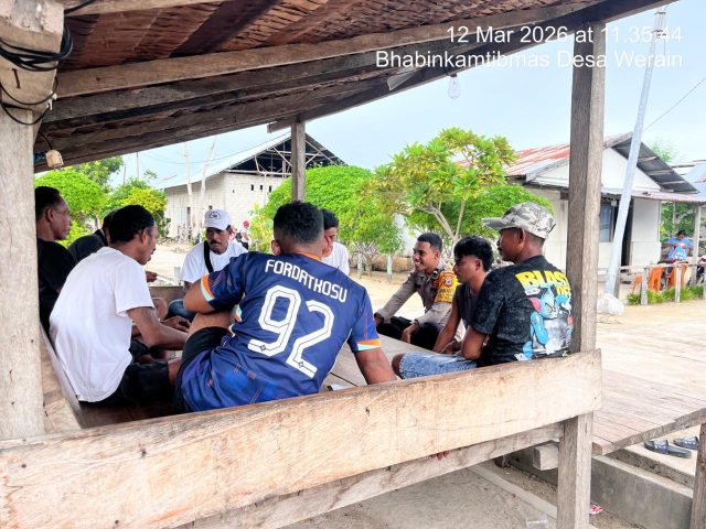 Tribratanews.polrestanimbar.com – Polda Maluku, Kepolisian Resor Kepulauan Tanimbar, Dalam upaya menjaga stabilitas keamanan dan ketertiban Masyarakat (Kamtibmas), Bhabinkamtibmas Desa Werain, Bripda B. NGILAMELE melaksanakan kegiatan sambang dialogis kepada Warga binaannya di Desa Werain, Kecamatan Selaru.