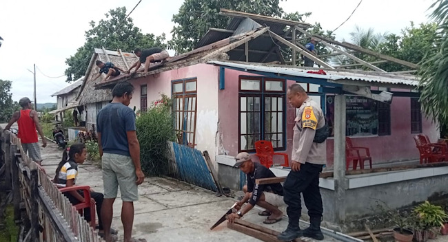 Dalam pantauan di lokasi, AIPDA N. KUNDRE tanpa ragu melebur bersama Warga, bahu-membahu mengangkat lembaran seng ke atas rangka rumah yanf diperbaiki. Dengan mengenakan seragam kebanggaannya, ia tampak bekerja sama, menunjukkan sisi humanis Polri yang hadir sebagai pelayan Masyarakat.