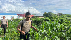Tribratanews.polrestanimbar.com – Polda Maluku, Kepolisian Resor Kepulauan Tanimbar, Dalam menggerakkan dan meningkatkan Ketahanan Pangan, Personel Polres Kepulauan Tanimbar melakukan pembersihan sekaligus pemeliharaan lahan dan tanaman jagung, yang berlangsung pada halaman belakang Mapolres Kepulauan Tanimbar, Sabtu (15/03/25).