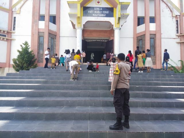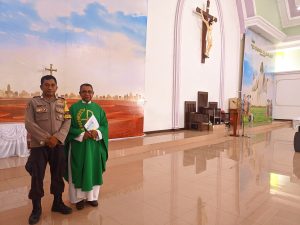 Tribratanews.polrestanimbar.com – Polda Maluku, Polres Kepulauan Tanimbar, di Gedung Gereja Katolik Hati Kudus Yesus desa Olilit Barat, Bhabinkamtibmas desa Olilit Raya 2 Bripka Angry Helaha hadir mengamankan jalannya Ibadah Minggu biasa XXXII, Minggu (06/11).