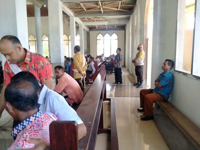 Tribratanews.polrestanimbar.com – Polda Maluku, Polres Maluku Tenggara Barat, Minggu 01 November 2020, pukul 10.00 wit, bertempat di Gereja St. Paulus Bomaki Kecamatan Tanimbar Selatan Kabupaten Kepulauan Tanimbar Bhabinkamtibmas Desa Bomaki Bripka S.E.S. Mitakda mengamankan Misa hari Raya Semua Orang Kudus pada Gereja St. Paulus Bomaki yang dilaksanakan pada 10.00 wit.