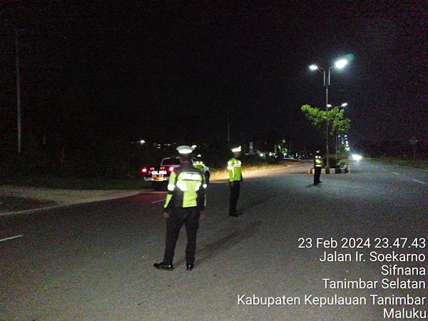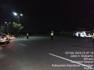 Tribratanews.polrestanimbar.com – Polda Maluku, Kepolisian Resor Kepulauan Tanimbar, Guna mengantisipasi adanya balapan liar, Satuan Lalu Lintas Polres Kepulauan Tanimbar menggelar Patroli di sejumlah titik rawan di seputaran Kota Saumlaki, Kecamatan Tanimbar Selatan, Kabupaten Kepulauan Tanimbar, Sabtu, (24/02/24) dini hari.