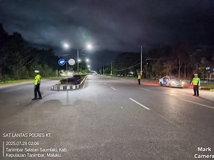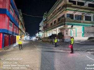 Kegiatan yang berlangsung pada, Senin (28/07/25) sejak malam hingga dini hari ini dilakukan dengan menyasar di sejumlah lokasi Wilayah Kota Saumlaki, Kecamatan Tanimbar Selatan, Kabupaten Kepulauan Tanimbar yang diduga kerap dijadikan beberapa kelompok Pemuda sebagai tempat untuk melakukan aksi balap liar maupun rawan timbulnya gangguan Kamtibmas.