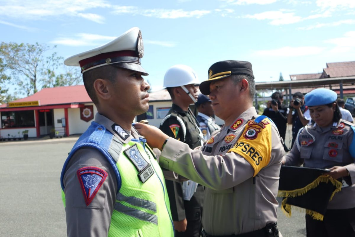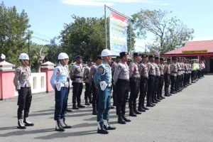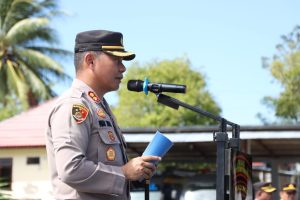 Tribratanews.polrestanimbar.com – Polda Maluku, Polres Kepulauan Tanimbar, Apel Gelar Pasukan Operasi Kepolisian dengan sandi “Zebra Salawaku 2022” digelar Markas Polres Tanimbar yang dipimpin langsung Kapolres AKBP Umar Wijaya, S.I.K., dengan tema “Tertib Berlalu Lintas guna mewujudkan Kamseltibcar Lantas yang Presisi”, Senin (03/10), pagi hari.