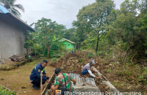 Bangun jalan rabat, Bhabinkamtibmas Lermatang hadir lakukan gotong royong bersama Warga