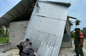Aksi kepedulian TNI-Polri di Kecamatan Selaru, bersihkan reruntuhan pasca bencana angin...