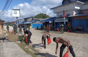 Kompak, TNI Polri di Kabupaten Kepulauan Tanimbar lakukan bersih-bersih lingkungan