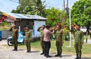 Bhabinkamtibmas Wowonda dan Kanit Binmas berikan pelatihan peningkatan kapasitas kepada Linmas