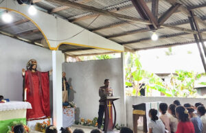 Tingkatkan keamanan usai Misa, Kapolsek Wertamrian pimpin mimbar Kamtibmas di Gereja...
