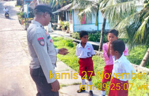 Tingkatkan disiplin Pelajar, Bhabinkamtibmas Romean sambangi Pelajar SD yang berkeliaran saat...