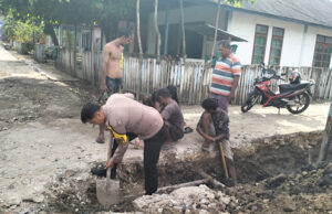 Wujud kedekatan Polri dan Warga, Bhabinkamtibmas Ilngei bantu Warga pembuatan saluran...