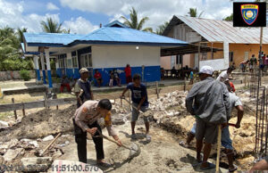 Ringankan pekerjaan, Bhabinkamtibmas Lauran hadir bantu Warga bangun Rumah Pastoran