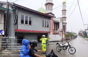 Tetap siaga di bawah guyuran hujan, Sat Lantas Polres Kepulauan Tanimbar...