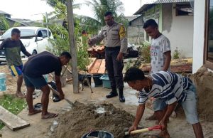 Sambil Membantu Warga,Bhabinkamtibmas Sosialisasi Maklumat Kapolri Tentang Cegah Covid 19