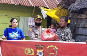 Bhabinkamtibmas Kelurahan Saumlaki Kawal Giat Pembagian Sembako Bagi Warga Terdampak Covid...