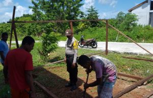 Bhabinkamtibmas Desa Rumahsalut Bersinergis Dalam Pembangunan Posko Covid 19