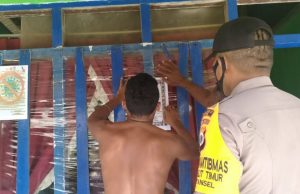 Bhabinkamtibmas Desa Olilit Timur Tempelkan Maklumat Kapolri Tentang Cegah Covid 19