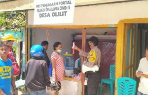 Bhabinkamtibmas Olilit Timur Pantau Pergerakan Warga Pada Posko Covid 19