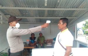 Bhabinkamtibmas Desa Arui Das Turun Langsung Mengecek Suhu Tubuh Warganya