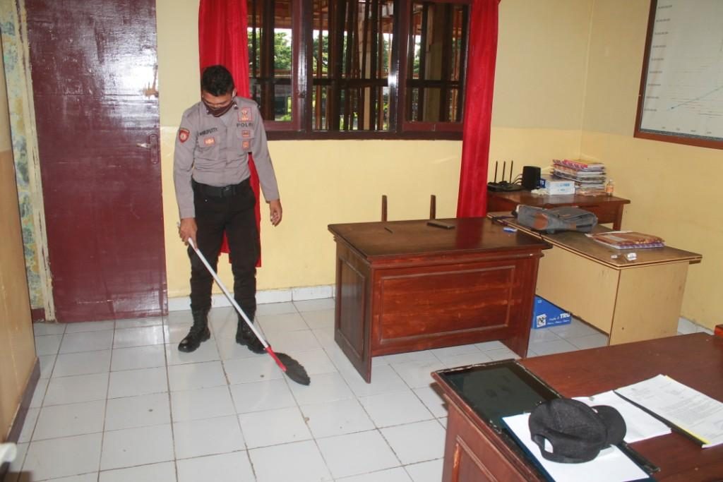 Bag Ren Polres MTB Bersihkan Ruangan Kerja Guna Cegah Virus Corona