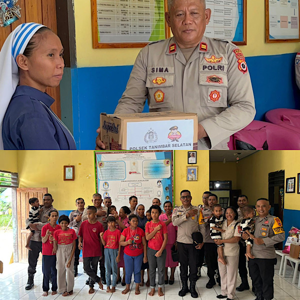 Tribratanews.polrestanimbar.com – Polda Maluku, Kepolisian Resor Kepulauan Tanimbar, Akhiri Tahun 2025 dengan semangat kepedulian, Polsek Tanimbar Selatan menggelar bakti sosial “Berbagi Kasih” ke Panti Asuhan Bakti Luhur Saumlaki, Kecamatan Tanimbar Selatan, Kabupaten Kepulauan Tanimbar pada, Rabu (31/12/25) pagi.