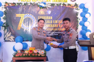 Tribratanews.polrestanimbar.com – Polda Maluku, Kepolisian Resor Kepulauan Tanimbar, Dalam memperingati Hari Ulang Tahun (HUT) Lalu Lintas Bhayangkara ke-70, Satuan Lalu Lintas Polres Kepulauan Tanimbar menggelar syukuran yang berlangsung di ruang lobi Mapolres Kepulauan Tanimbar pada, Senin (22/09/25).