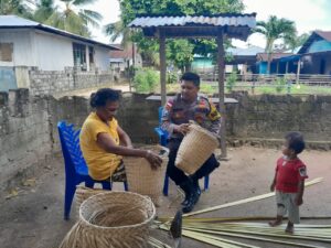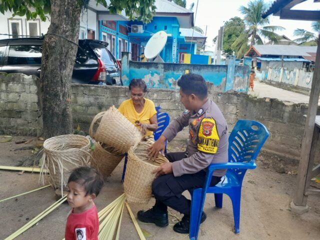 Tribratanews.polrestanimbar.com – Polda Maluku, Polres Kepuluan Tanimbar, wujudkan Polri dalm mendukung UMKM, Bhabinkamtibmas Desa Lauran Brigpol S.A. Ivakdalam sambangi Warga binaan melalui Door to door Sistem (DDS) kepada Pelaku UMKM pengrajin Bakul yaitu Ibu Yuliana Sarbunan Warga RT. 08/RW 02 Desa Lauran, Kecamatan Tanimbar Selatan, Kabupaten Kepulauan Tanimbar, Rabu (24/05).