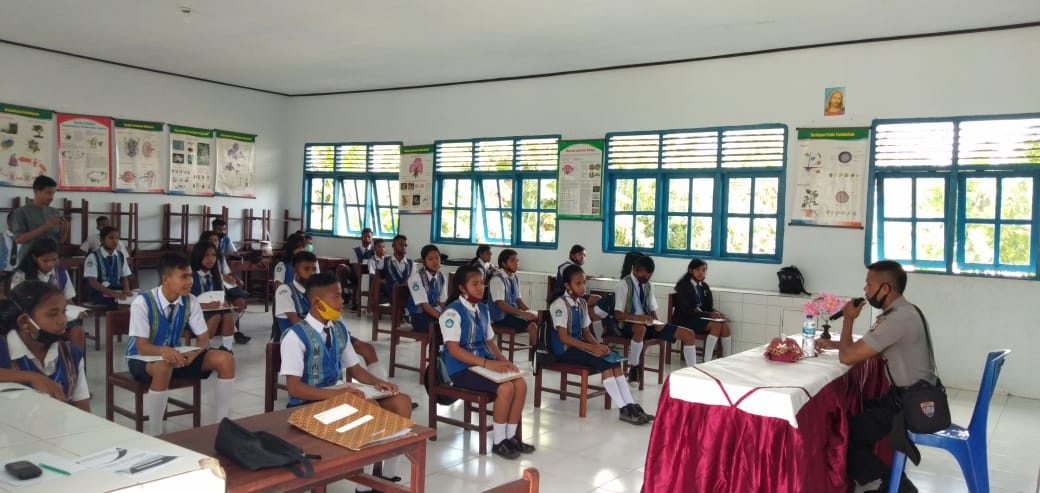 Tribratanews.polrestanimbar.com – Polda Maluku, Polres Maluku Tenggara Barat, Jumat 17 Juli 2020, pukul 09.00 wit, bertempat di Desa Batuputih, Kecamatan Wermaktian, Kabupaten Kepulauan Tanimbar Bhabinkamtibmas Desa Batuputih Bripka P. Titirloloby memberikan Materi tentang Kenakalan Remaja Kepada para siswa – siswi SMA Neg. 16 yang sementara mengikuti Masa Orientasi Siswa ( MOS ).