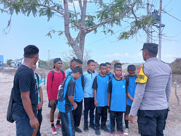 Sembari melaksanakan Patroli pada Wilayah binaan nya di Desa Adaut II, Kecamatan Selaru, Kabupaten Kepulauan Tanimbar, Bripda B. LEREBULAN menyempatkan diri menghampiri sekumpulan Pelajar SMP yang hendak kembali ke rumah masing-masing saat hendak pulang Sekolah.