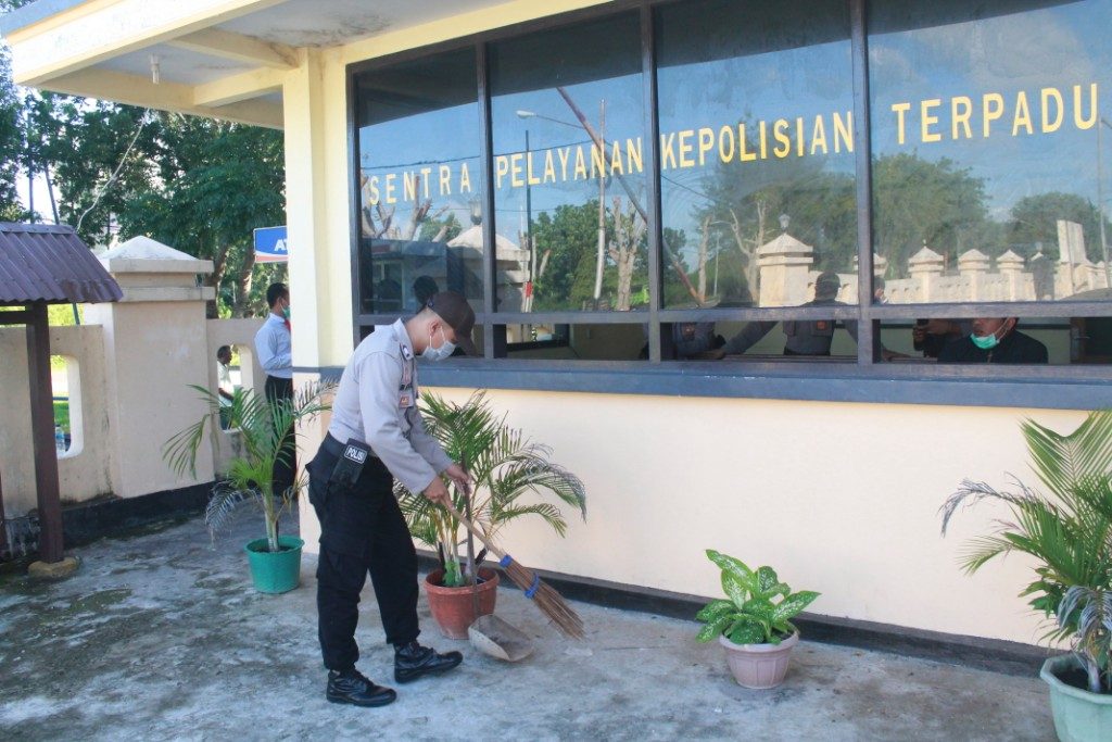 Kerja bakti diruangan SPKT Polres Maluku Tenggara Barat tersebut, dimulai dari Pembersihan ruangan dalam kemudian luar ruangan.