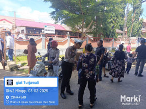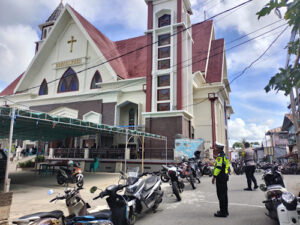 Tribratanews.polrestanimbar.com – Polda Maluku, Kepolisian Resor Kepulauan Tanimbar, Dalam upaya memberikan kenyamanan dan keamanan bagi Umat Kristiani yang sedang melaksanakan Misa maupun Ibadah di hari Minggu, Personel Satuan Lalu Lintas Polres Kepulauan Tanimbar lakukan pengamanan dan pengaturan di sejumlah Gereja, Minggu (02/03/25).