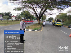 Tribratanews.polrestanimbar.com – Polda Maluku, Kepolisian Resor Kepulauan Tanimbar, Pastikan seluruh kegiatan Masyarakat dapat berlangsung aman dan lancar, Jajaran Satuan Lalu Lintas Polres Kepulauan Tanimbar lakukan pengamanan (pam) dan pengawalan (kawal) kegiatan lomba gerak jalan indah pada, Rabu (13/08/25) pagi.