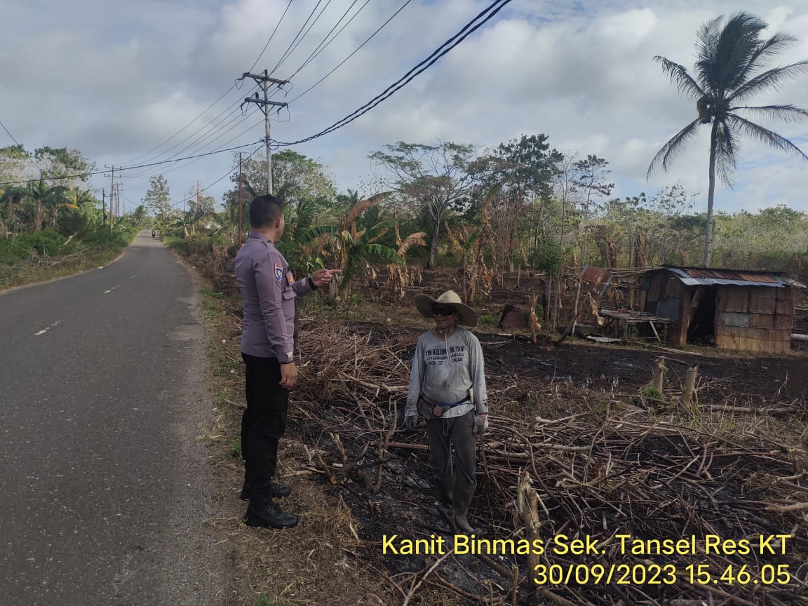 Berikan Pemahaman tentang bahaya Karhutla, Kanit Binmas Polsek Tansel sambangi Petani Warga Bomaki
