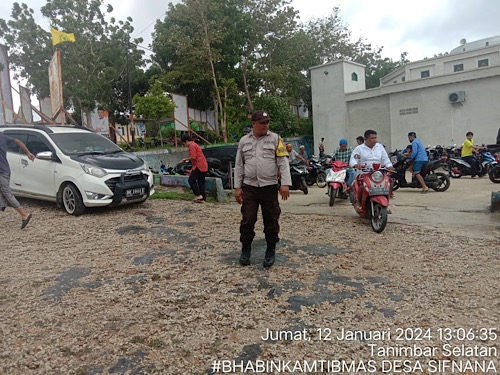 Tribratanews.polrestanimbar.com – Polda Maluku, Kepolisian Resor Kepulauan Tanimbar, Guna terciptanya suasana keamanan dan kenyamanan bagi Masyarakat yang hendak Melaksanakan ibadah Sholat Jumat, Bhabinkamtibmas Desa Sifnana Bripka E.M. TOMHISA rutin melakukan Pengamanan, Jumat (12/01/24).
