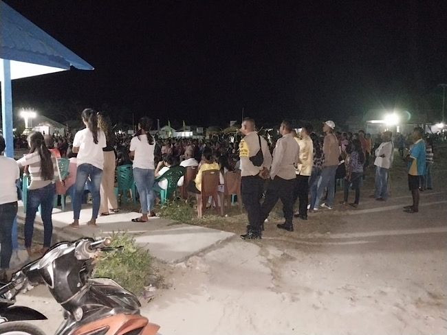Sebagaimana yang telah dilakukan oleh Personel Polsek Fordata dalam melakukan pengamanan Ibadah Oikumene (Romean Bermazmur) yang berlangsung di Lapangan Eli Wawan Desa Romean, Kecamatan Fordata, Kabupaten Kepulauan Tanimbar, Jumat (28/09/24) malam.