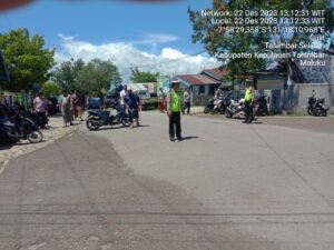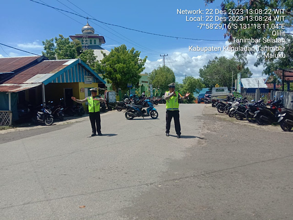 Tribratanews.polrestanimbar.com – Polda Maluku, Kepolisian Resor Kepuluan Tanimbar, pastikan berjalan aman dan lancar, Personil Sat Lantas Polres Kepulauan Tanimbar melakukan Pengamanan serta Pengaturan Arus Lalu Lintas bagi Masyarakat yang hendak Melaksanakan Ibadah Sholat Jumat, Jumat (22/12).
