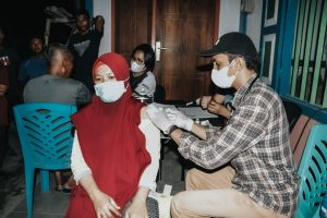 Berinovasi dalam pelayanan Vaksinasi, Polres Tanimbar bersama Brimob vaksinasi 53 orang di Gerai Vaksin depan Masjid An’nur usai Sholat Tarawih
