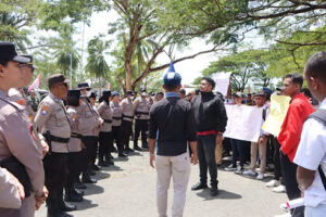 Tribratanews.polrestanimbar.com – Polda Maluku, Kepolisian Resor Kepuluan Tanimbar, Sejumlah Personel gabungan TNI-Polri disiagakan untuk mengamankan jalannya aksi unjuk rasa solidaritas yang dilakukan oleh Aliansi Cipayung Plus, berlangsung di Gedung DPRD Kabupaten Kepulauan Tanimbar, Senin (01/09/25).