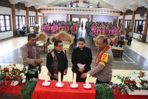 “Selaku Kapolres beserta Isteri dan Keluarga, Kami ucapkan selamat merayakan Natal 2025 dan Tahun Baru 2026. Semoga cinta kasih dan damai Natal membawa berkat bagi Kita semua, diberi kesehatan dan diberi kemampuan untuk melaksanakan tugas sebagai anggota Polri dalam melayani Masyarakat” ucapnya.