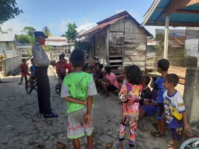 Tribratanews.polrestanimbar.com – Polda Maluku, Polres Maluku Tenggara Barat, Selasa 23 Juni 2020, Pukul 10. 30 wit, Bertempat di Desa Ritabel Kecamatan Tanimbar Utara Kabupaten Kepulauan Tanimbar Bhabinkamtibmas desa Ritabel Bripka S. Rahantaly melaksanakan giat Binluh kepada anak – anak yang sementara bermain di depan rumah milik Bapak Feki Rataleman,dan berikan sosialisasi dalam bentuk cerita tentang Prosedur Standar Tatanan Baru New Normal.