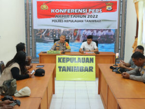 Tribratanews.polrestanimbar.com – Polda Maluku, Polres Kepulauan Tanimbar menggelar Konferensi Pers bersama Awak Meria yang dipimpin langsung oleh Kapolres Kepulauan Tanimbar AKBP Umar Wijaya, S.I.K, yang didampingi oleh Kanit III Sat Reskrim Ipda. Briyantri Maulana, S.Tr.K dan Kasubsi Penmas Humas Ipda Samsul Bahri, yang bertempat di Ruang Rapat Polres Kepulauan Tanimbar, (31/12).
