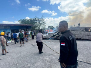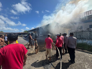 Tribratanews.polrestanimbar.com – Polda Maluku, Kepolisian Resor Kepulauan Tanimbar, Kebakaran besar kembali terjadi yang melanda kawasan Pasar. Insiden ini dikabarkan terjadi sekitar pukul 13.40 Wit yang bertempat di Areal Terminal Pasar Omele Desa Sifnana, Kecamatan Tanimbar Selatan, Kabupaten Kepulauan Tanimbar, Selasa (05/08/25).