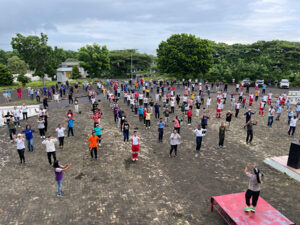 Kegiatan Olahraga bersama yang digelar pada halaman Kantor Bupati ini diawali dengan melakukan jalan sehat bersama dengan menyusuri sepanjang jalan Ir. Soekarno Saumlaki, Kecamatan Tanimbar Selatan, Kabupaten Kepulauan Tanimbar hingga kembali finish pada halaman Kantor Bupati.