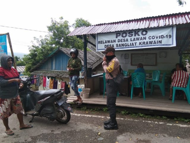 Bhabinkamtibmas Desa Sangliat Krawain BRIPTU M. MURIANY, Melaksanakan giat sambang kepada beberapa relawan covid 19 di desa Sangliat Krawain.