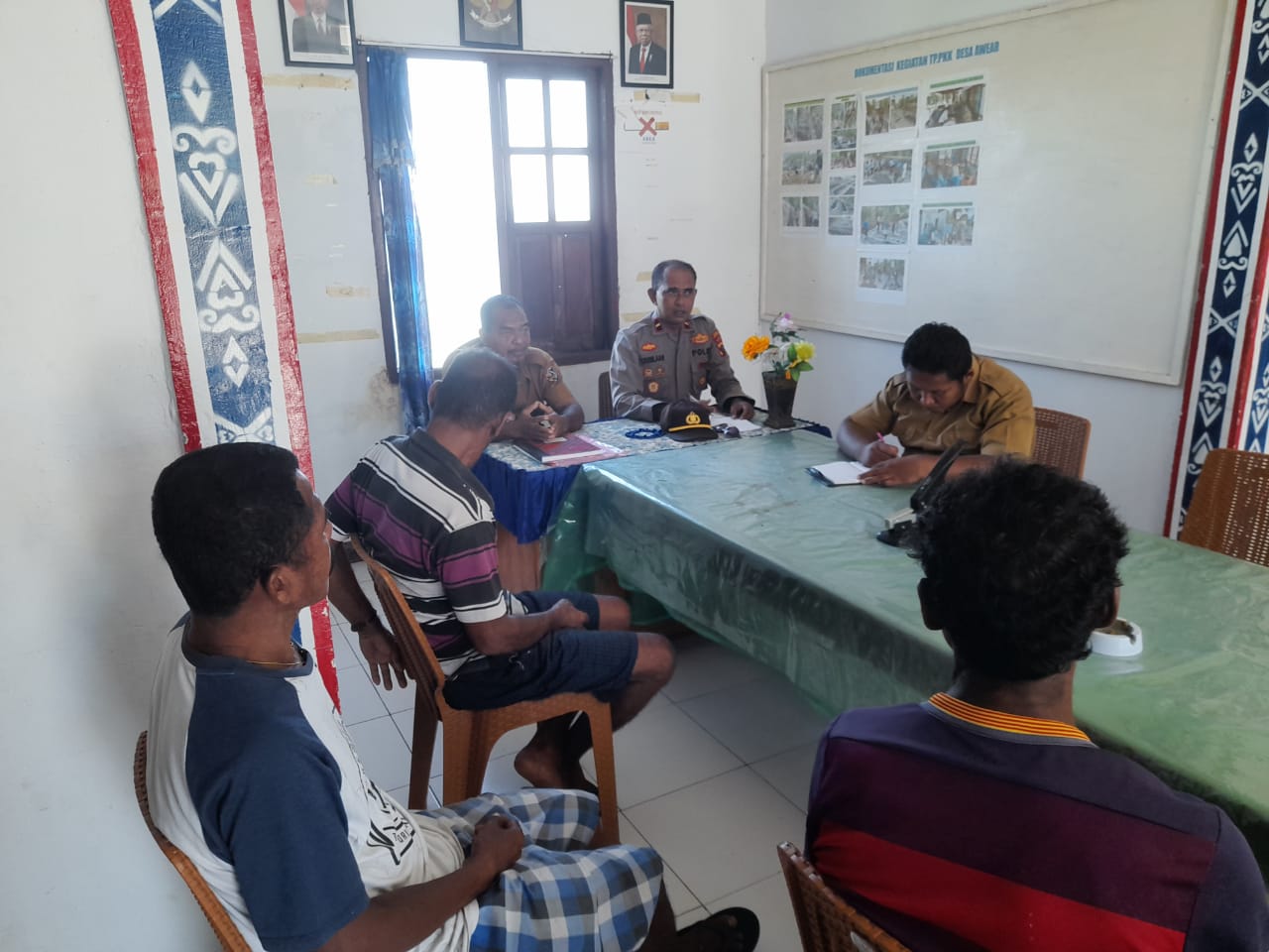 Tribratanews.polrestanimbar.com – Polda Maluku, Polres Kepulauan Tanimbar, Kapolsek Fordata Ipda Y. Rumlaan laksanakan kegiatan Jumat Curhat bersama Pemerintah Desa beserta Warga Desa Awear yang bertempat di Kantor Desa Awear, Kecamatan Fordata, Kabupaten Kepulauan Tanimbar, Jumat (21/04).